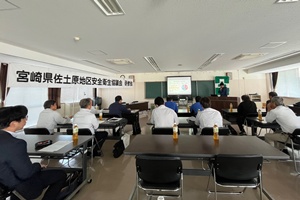 今回は火災対策をテーマに研修を行いました。火災は予期せぬタイミングで発生し、初動対応によって被害が大きく左右されます。宮崎市北消防署ご担当者様による最近の事案や対策についてわかりやすく説明していただきました。